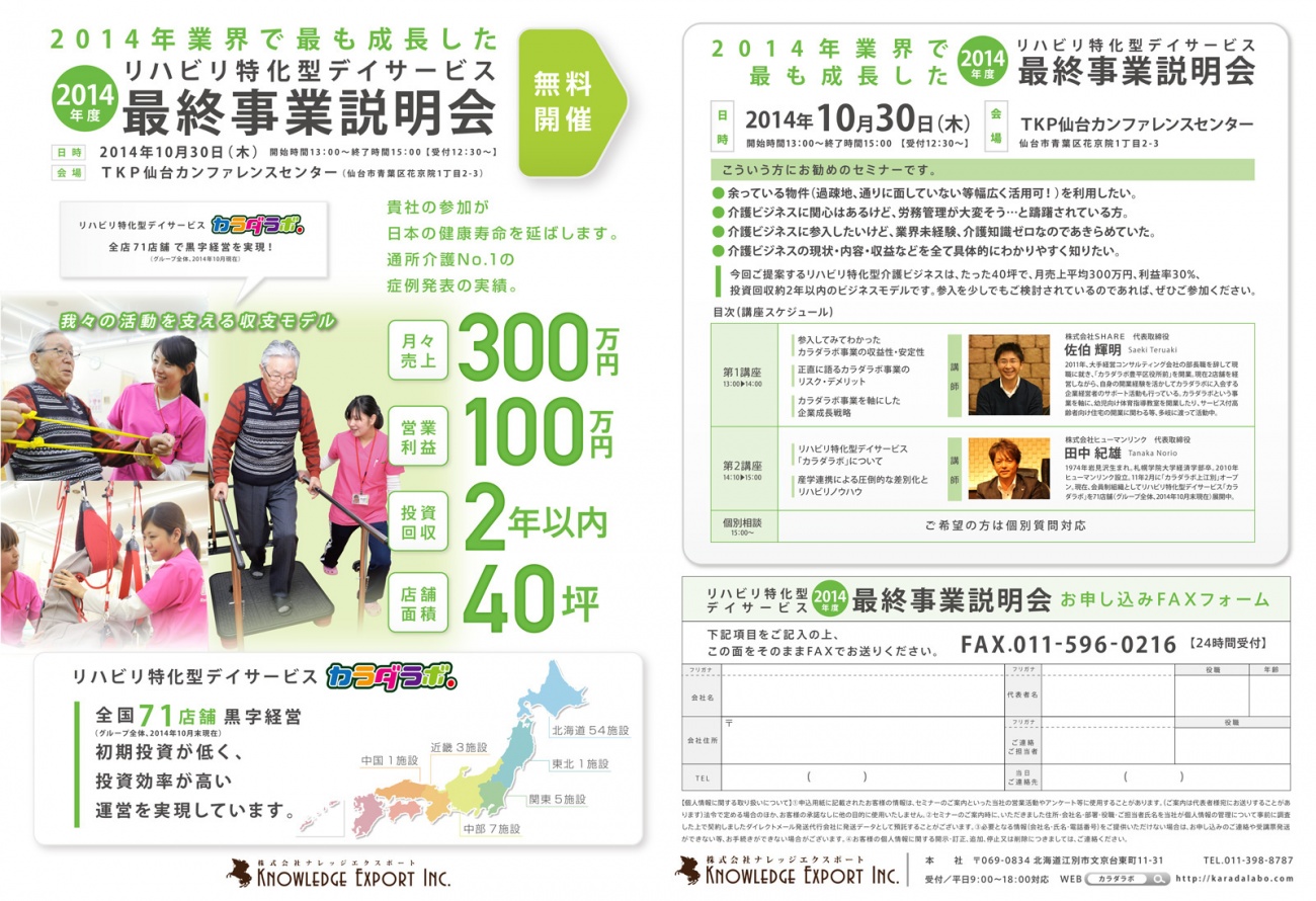 「リハビリ特化型デイサービス 事業説明会」を無料開催いたします!