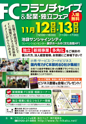 開催される「FC&起業・独立フェアin東京」に出展いたします。