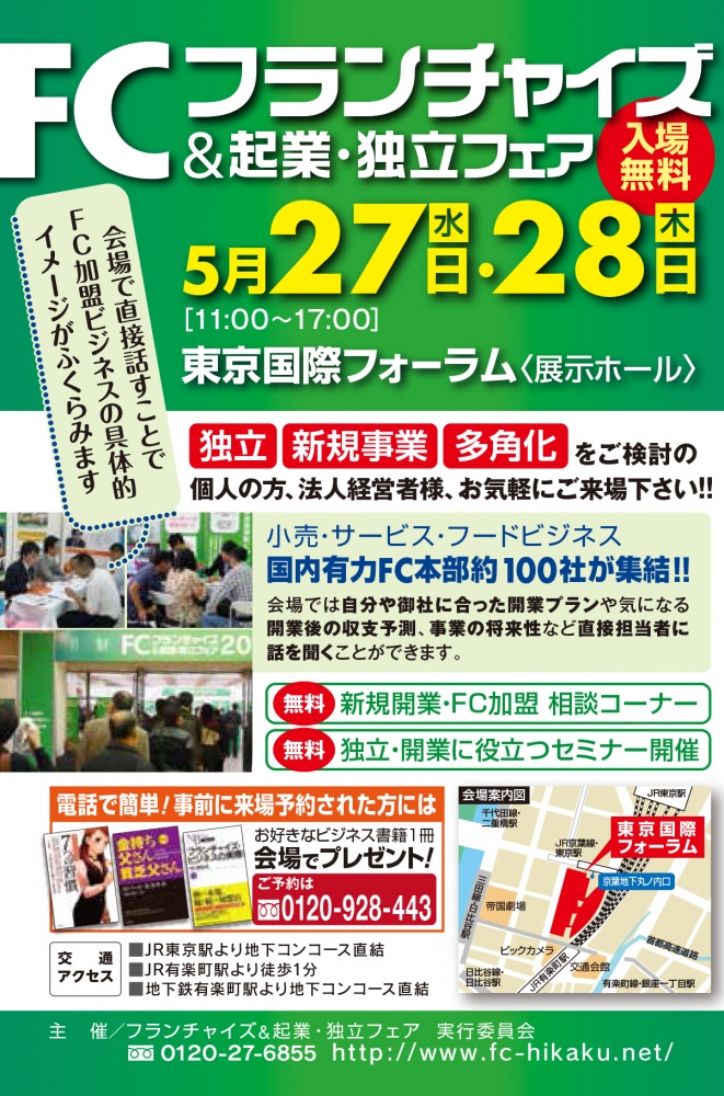 開催される「FC&起業・独立フェアin東京」に出展いたします。