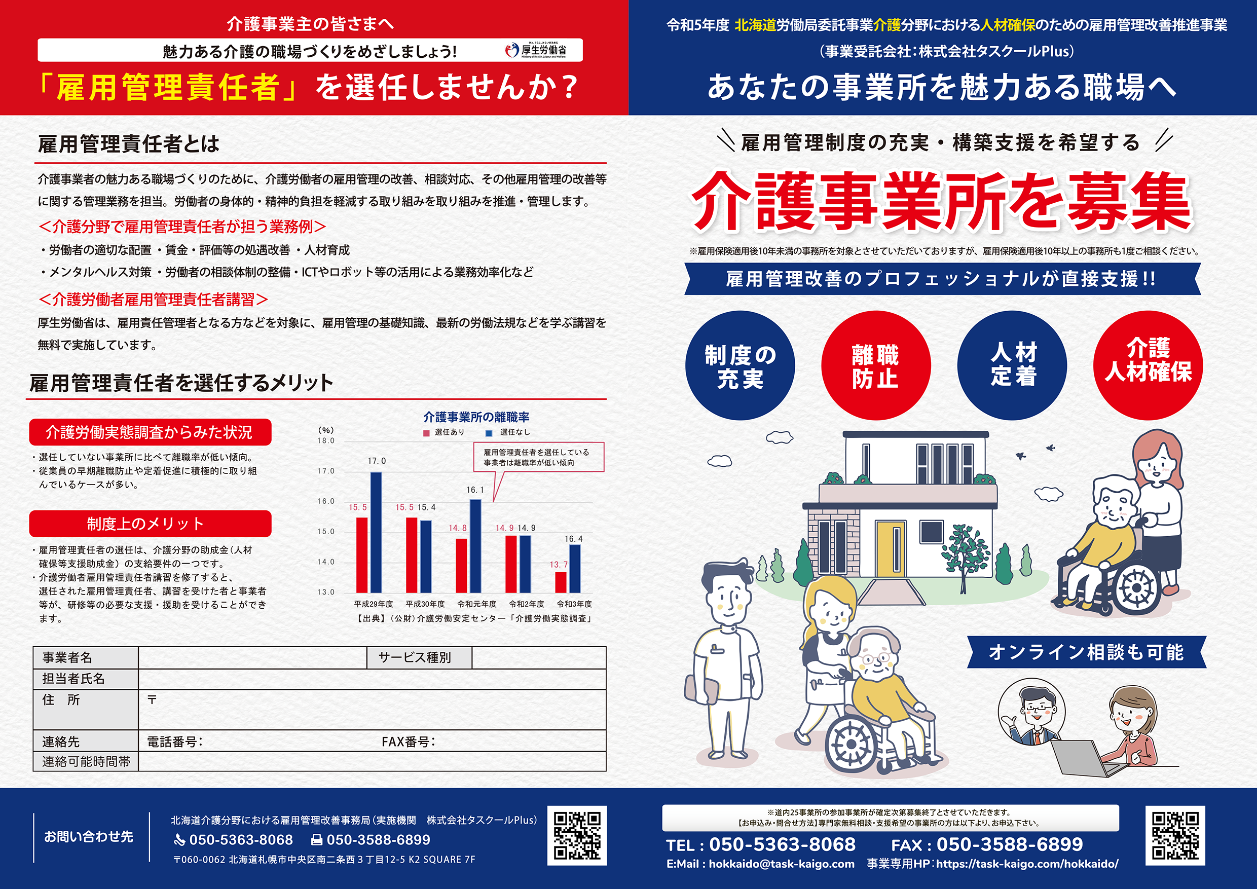 この度、弊社代表取締役・田中 紀雄が、北海道労働局『令和5年度 北海道介護分野における人材確保のための雇用管理改善推進事業』において、雇用管理改善企画委員会 企画委員に就任いたしました。