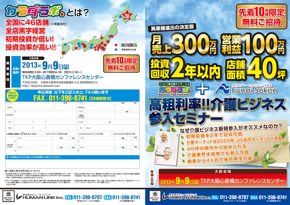 介護ビジネス参入セミナーin関西 先着10名様限定無料!!