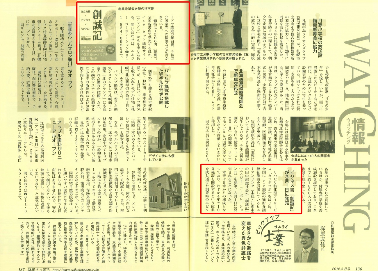 「創誠記」が財界さっぽろ 3月に掲載されました。