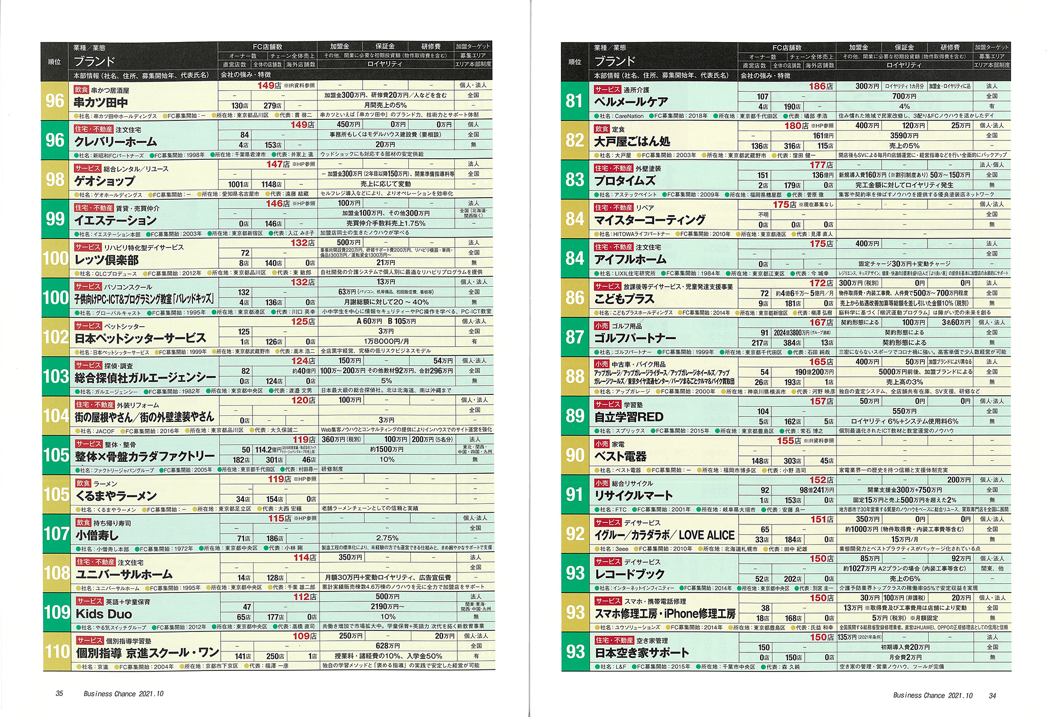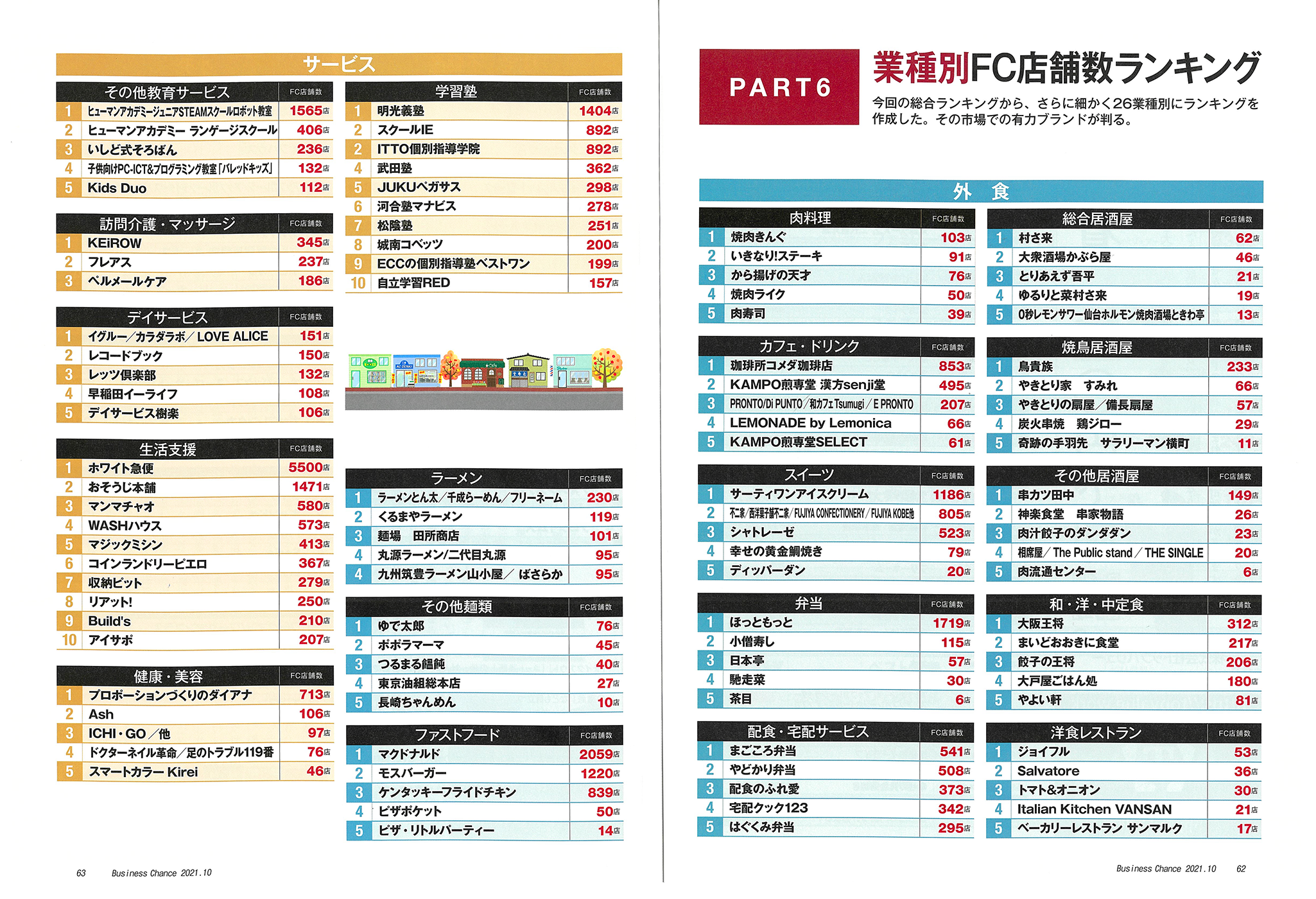 ビジネスチャンス10月号の「2021年度版 フランチャイズ加盟店舗数ランキング」にご掲載頂きました。 3eeeグループのフランチャイズ加盟事業所数は151事業所で 全業種の総合ランキングにおいて92位、 業種別ランキングにおいてデイサービス部門1位となりました。