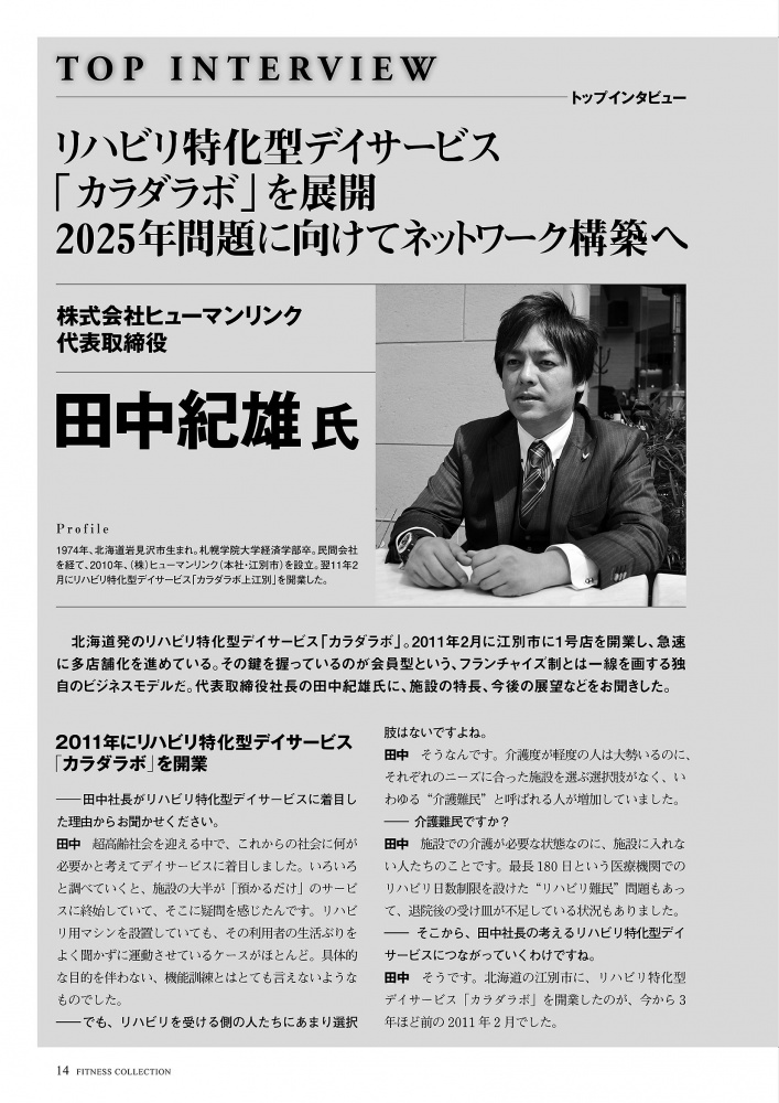 フィットネスコレクション 2014 夏号 14~16ページに弊社代表及び「カラダラボ」が掲載されました。