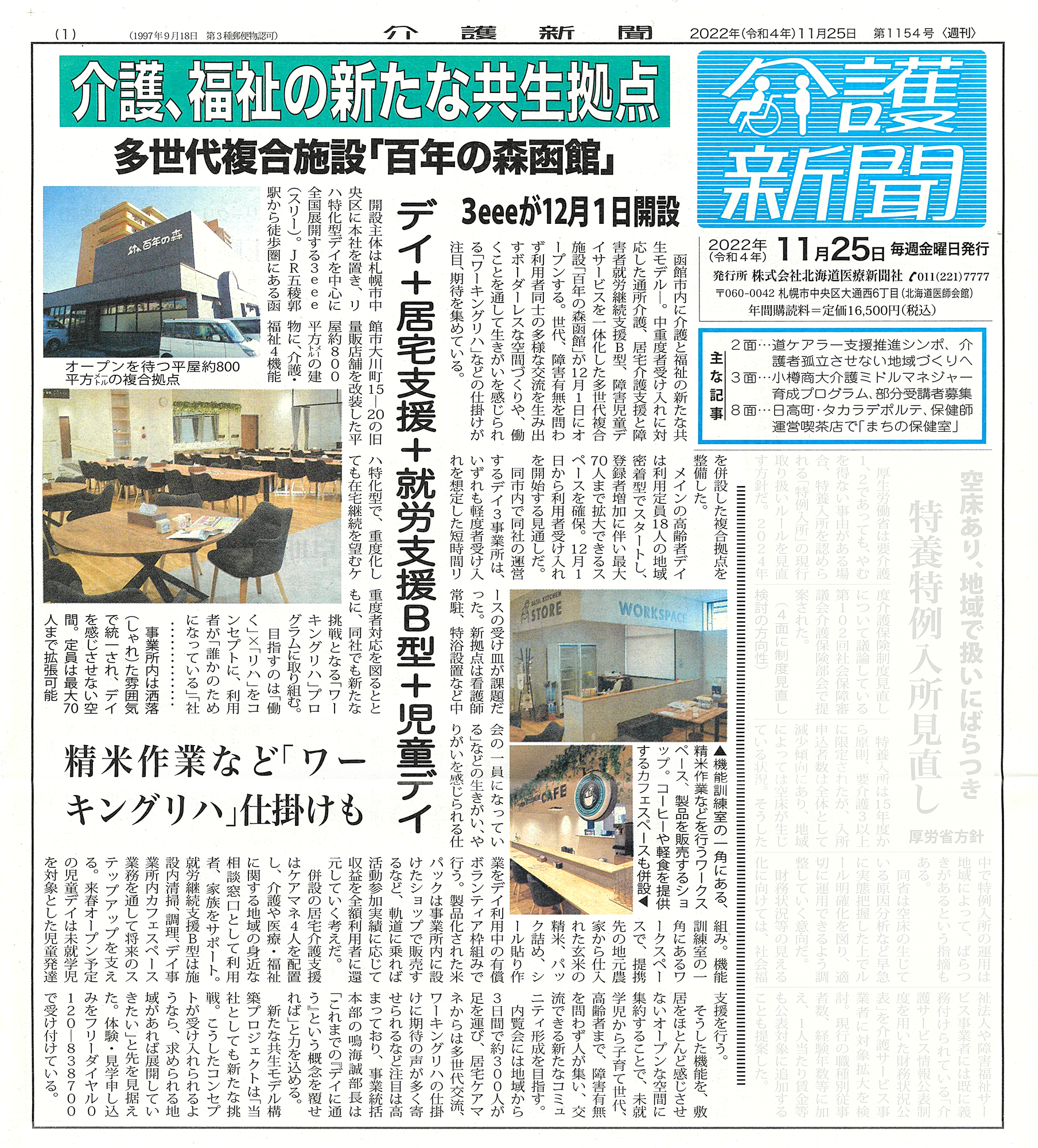 介護新聞 2022年11月25日号に、