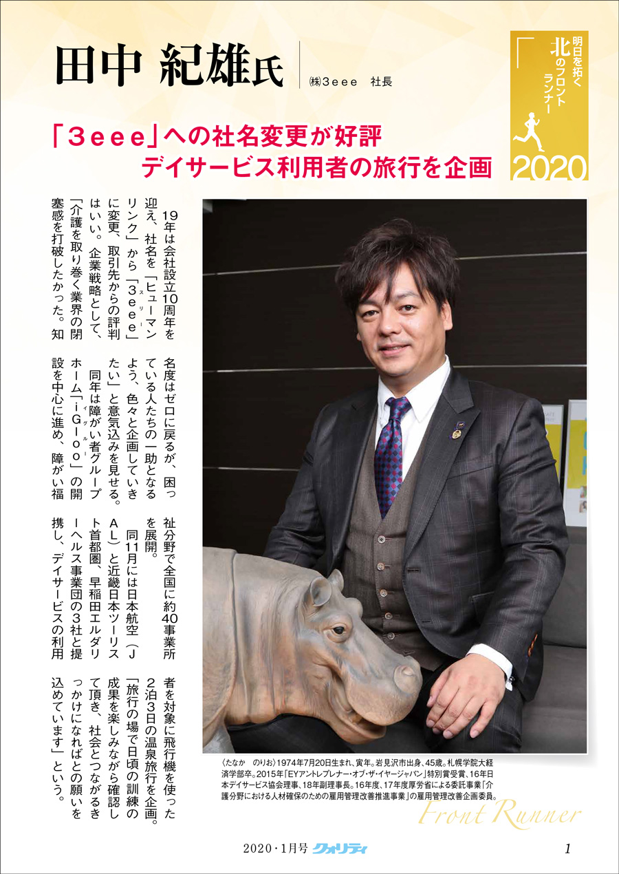 月刊クオリティ1月号に、当社代表取締役 田中紀雄がインタビューを受けた内容をご掲載いただきました。