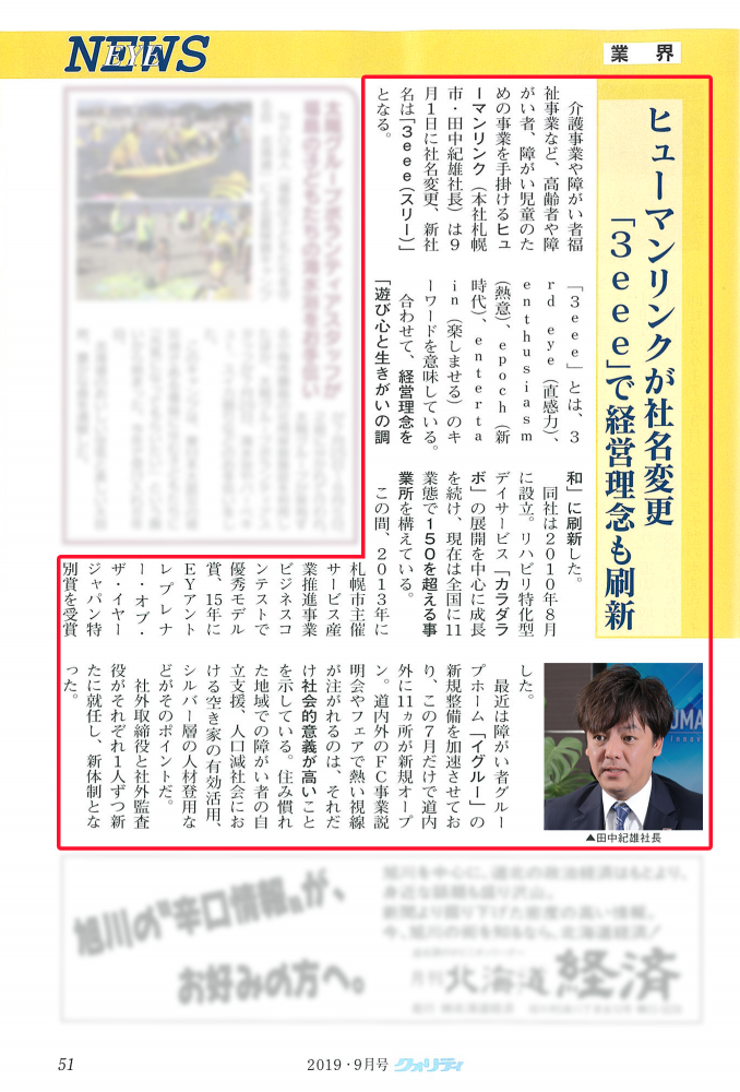 月刊クオリティ9月号に掲載されました