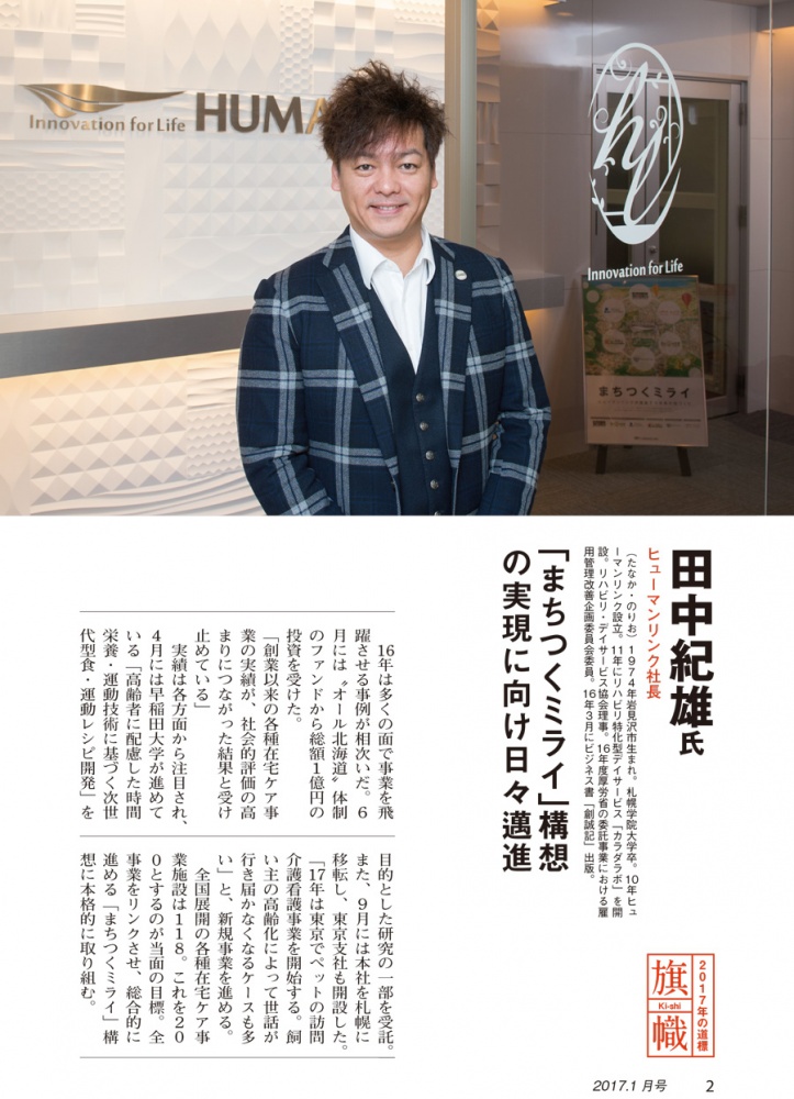 財界さっぽろ新年号の2ページにヒューマンリンク代表取締役社長 田中紀雄が掲載されました。
