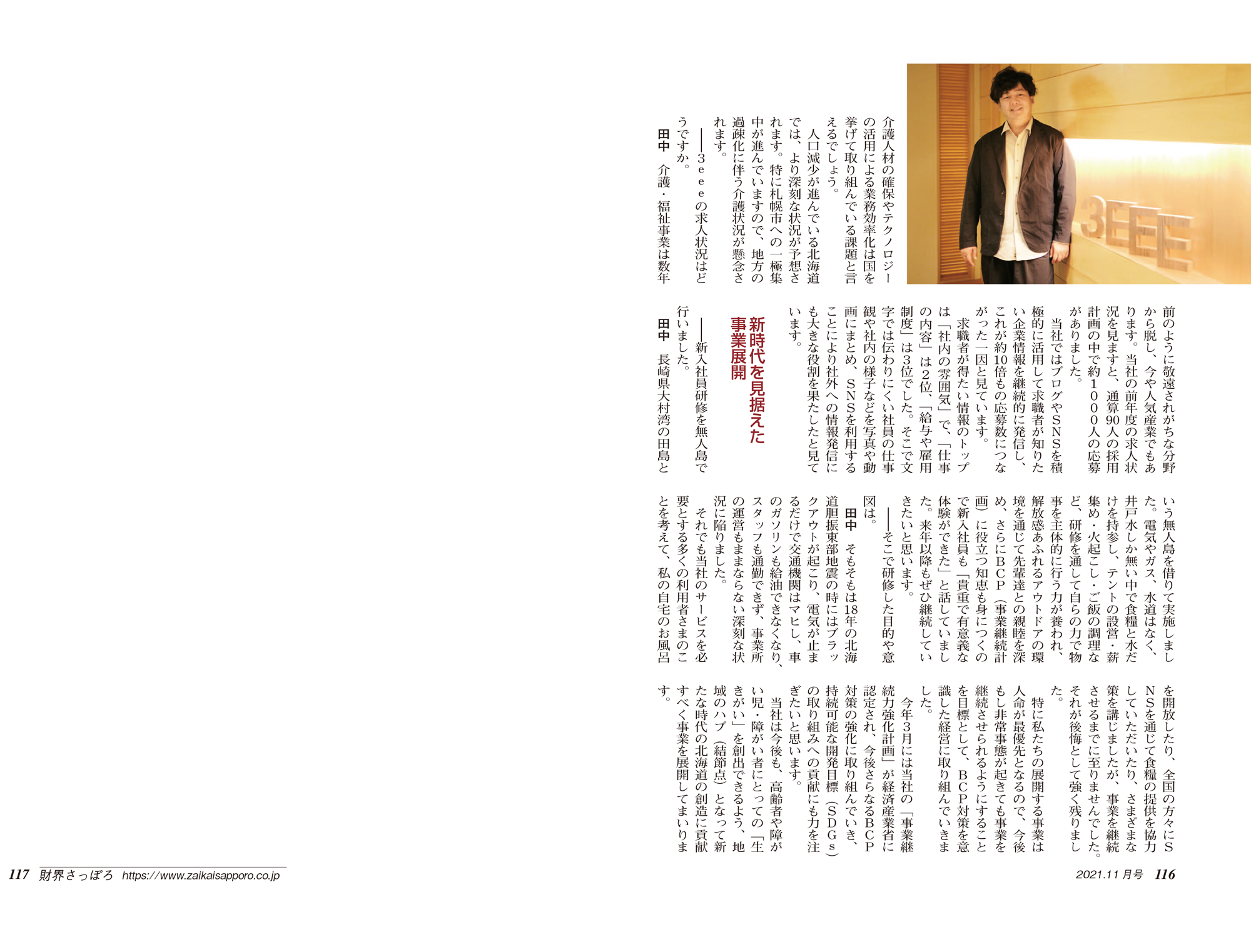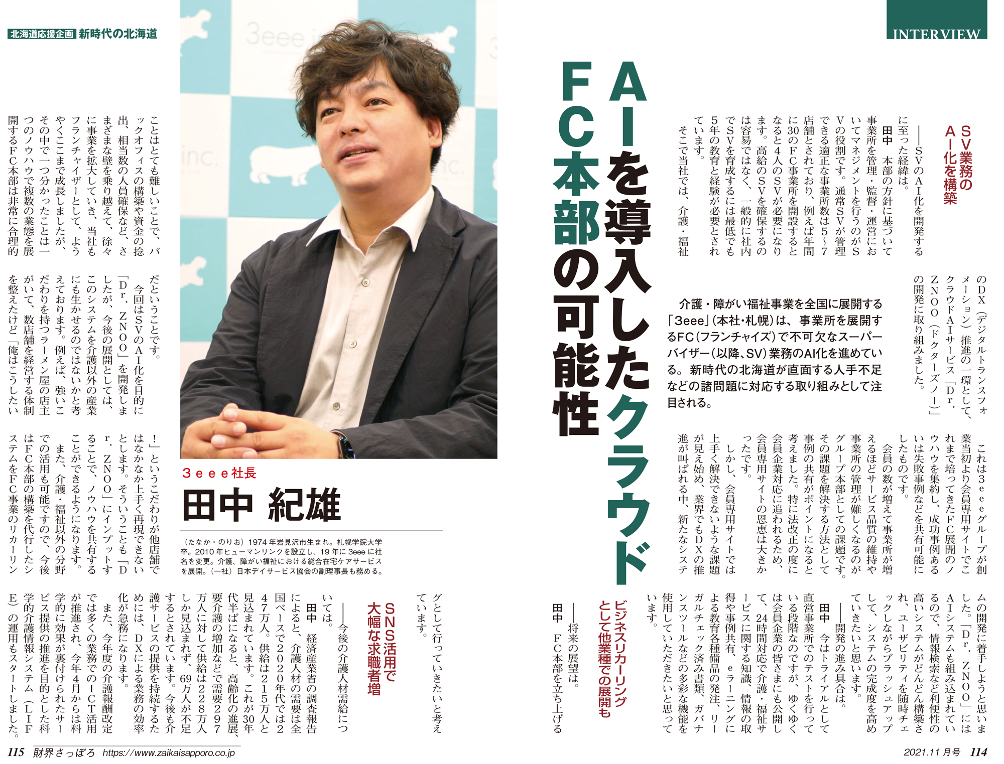 財界さっぽろ11月号の114~116ページに、今後北海道が直面する人手不足などの諸問題に対応する取り組みについて、ご掲載頂きました。