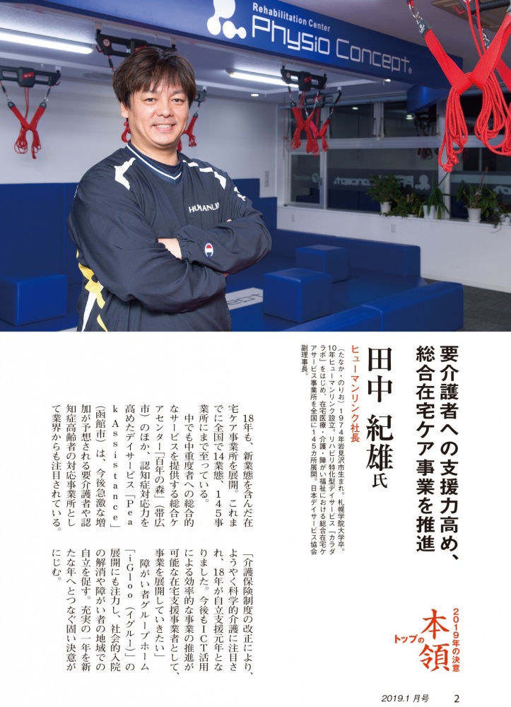 財界さっぽろ新年号の187ページにヒューマンリンク代表取締役社長 田中紀雄が掲載されました。