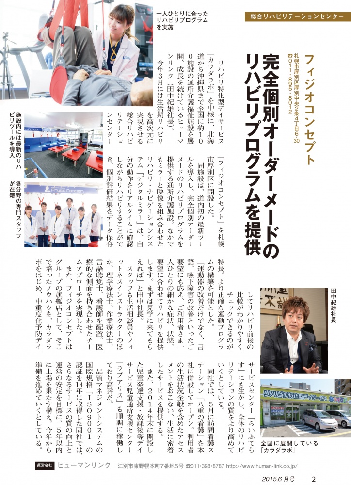 財界さっぽろ年始号 2ページに、完全個別オーダーメイドのリハビリテーションを提供している「フィジオコンセプト」及び弊社代表取締役が掲載されました。