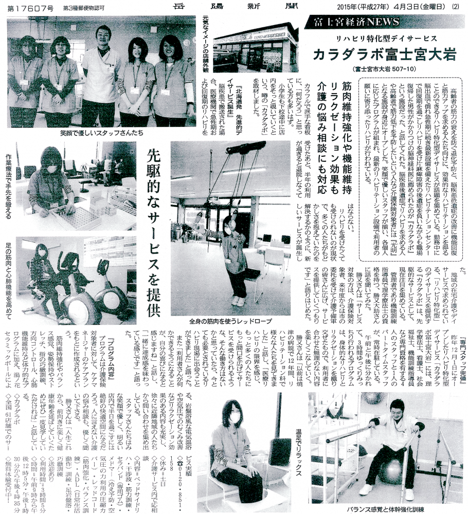 静岡県の現地メディアに、カラダラボ富士宮大岩が掲載されました。