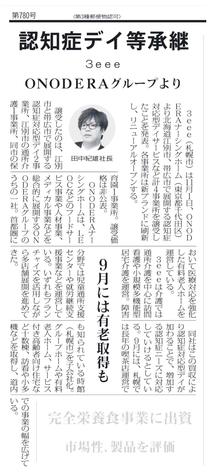 株式会社ONODERAナーシングホームからの事業譲受、