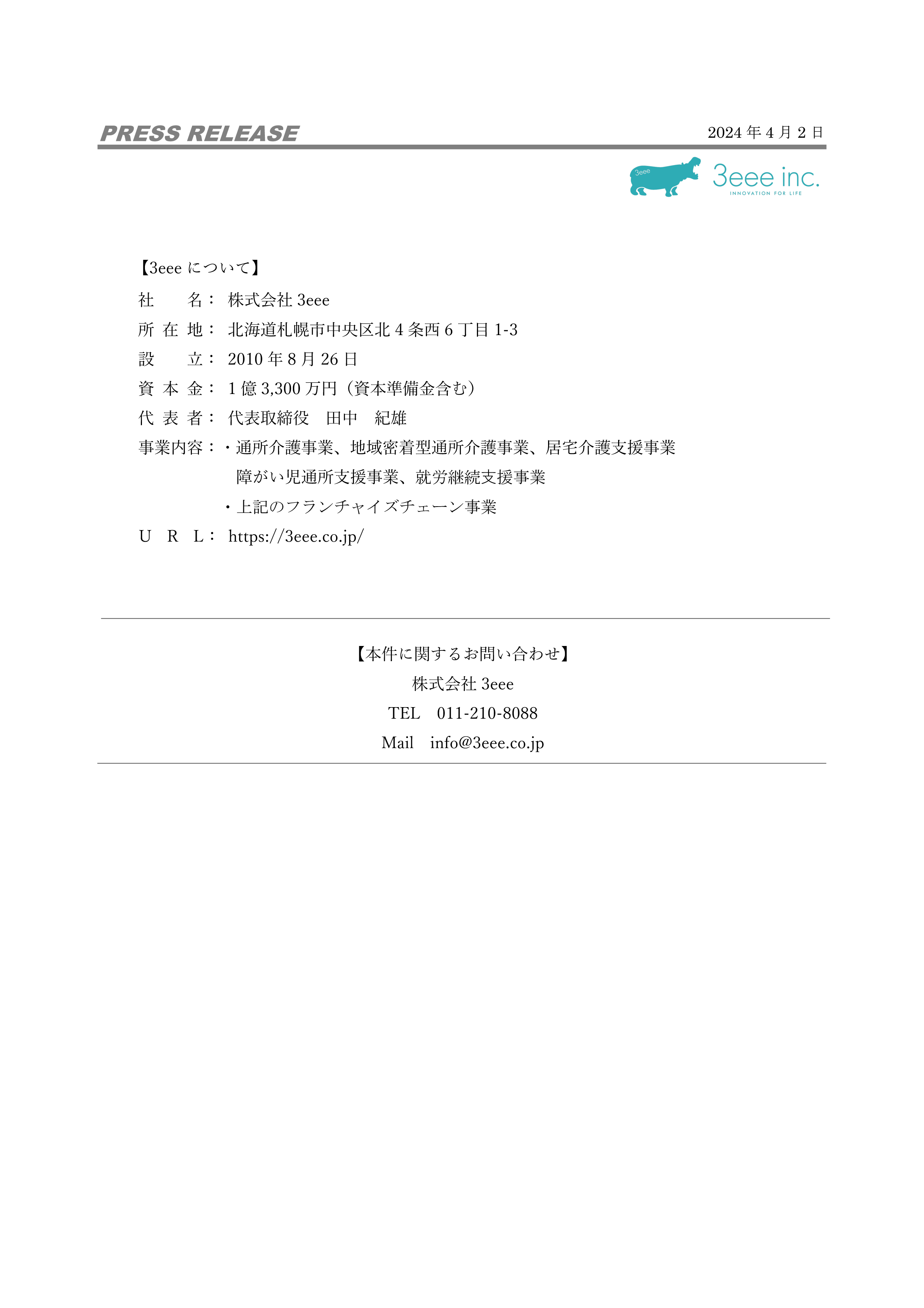 この度、株式会社3eeeが